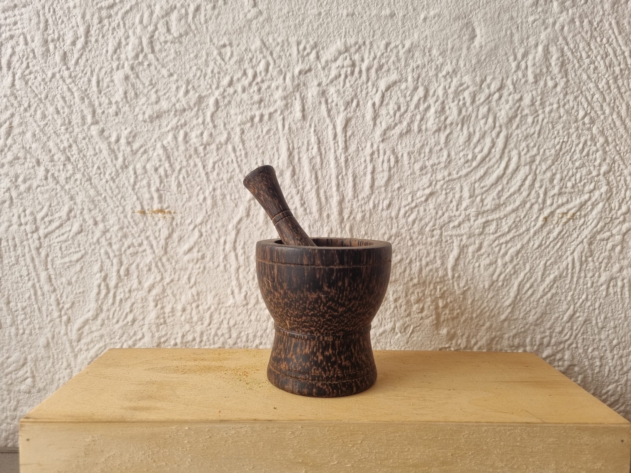 Le bois de palmier à sucre est dense et résistant. Sa texture striée en fait l’outil idéal pour broyer efficacement graines, herbes et épices.